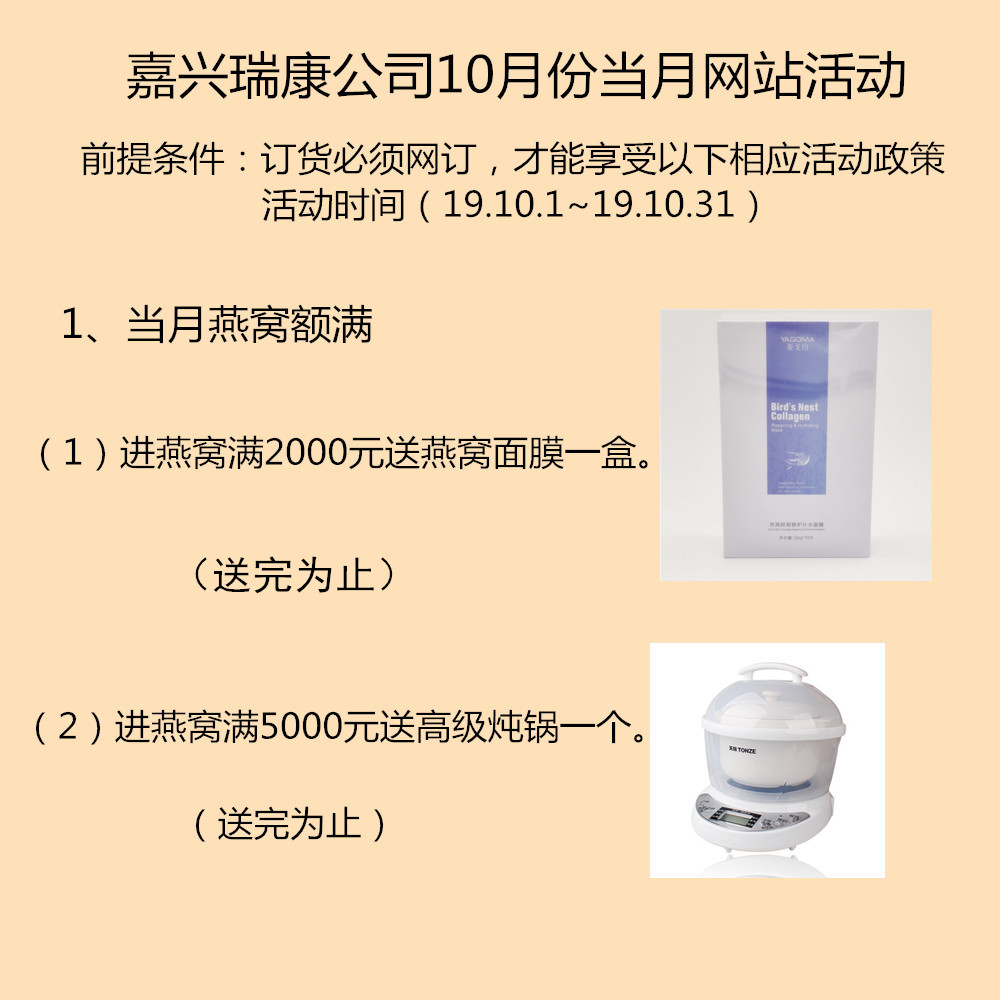 2019年嘉兴瑞康公司10月份优惠活动