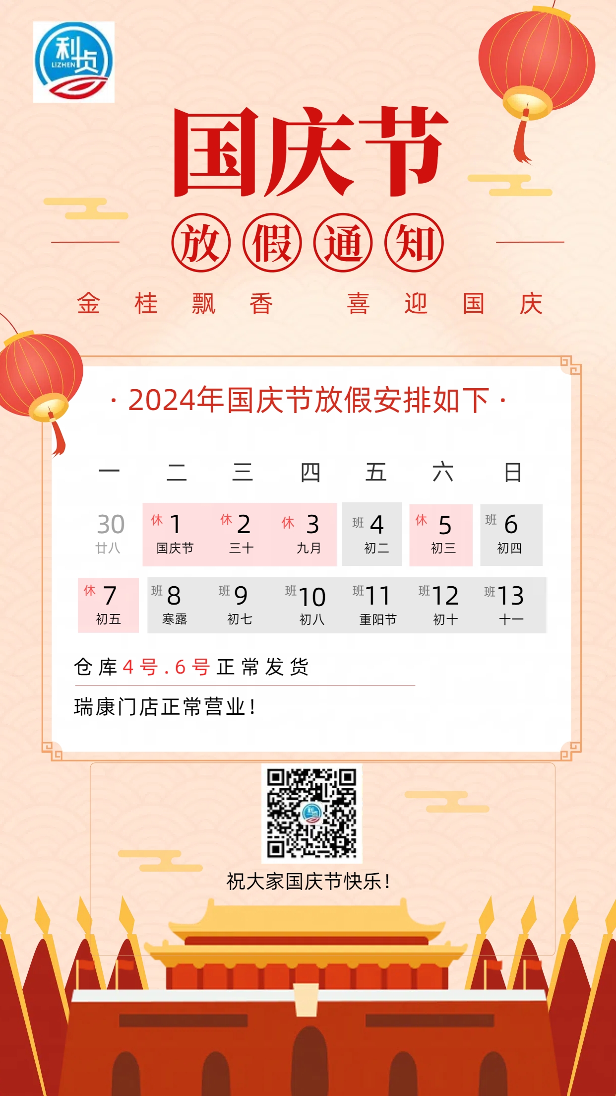 2024年国庆节放假通知